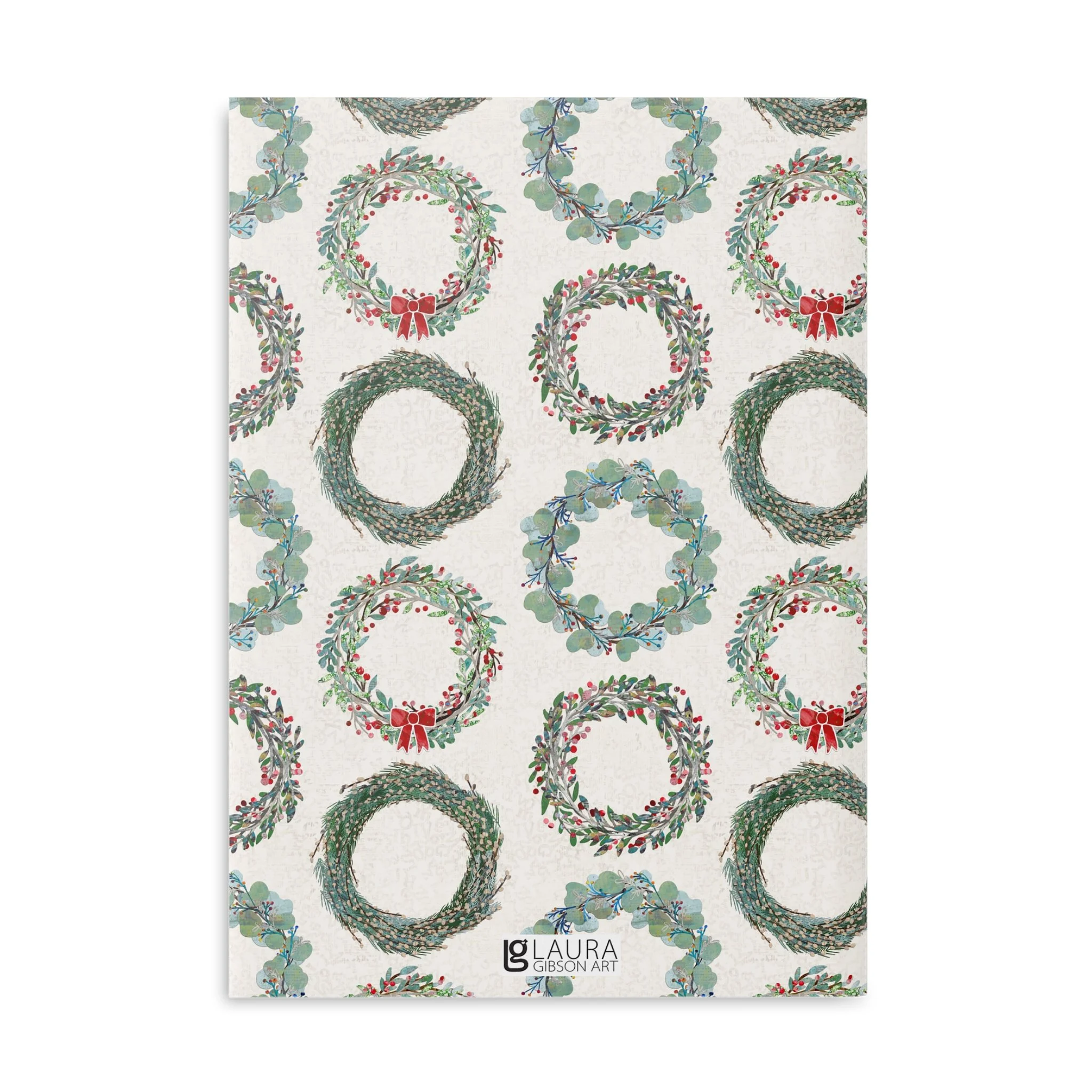 Merry and Bright ~ Puffy Hardcover Notebook with Holiday Festive Wreath Design