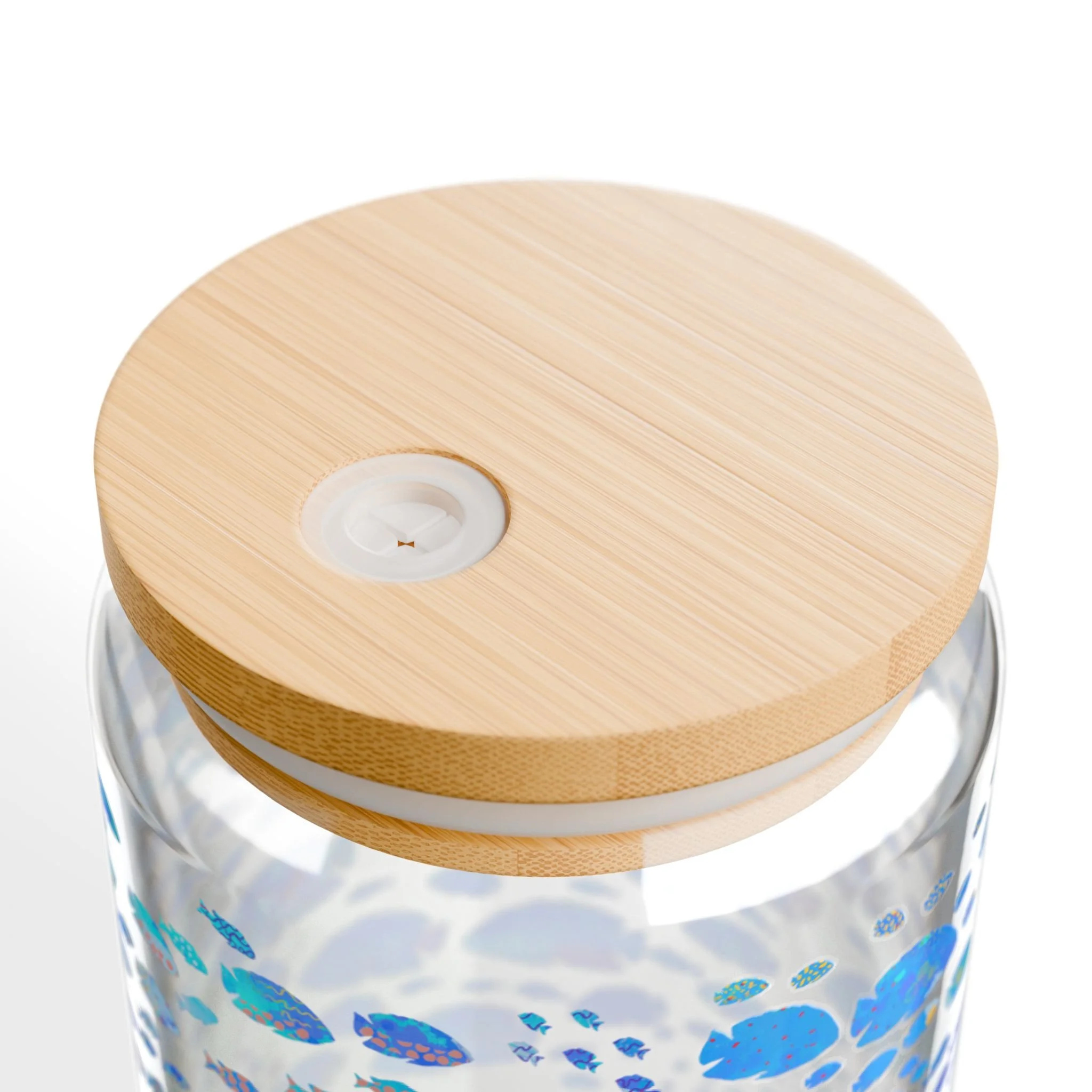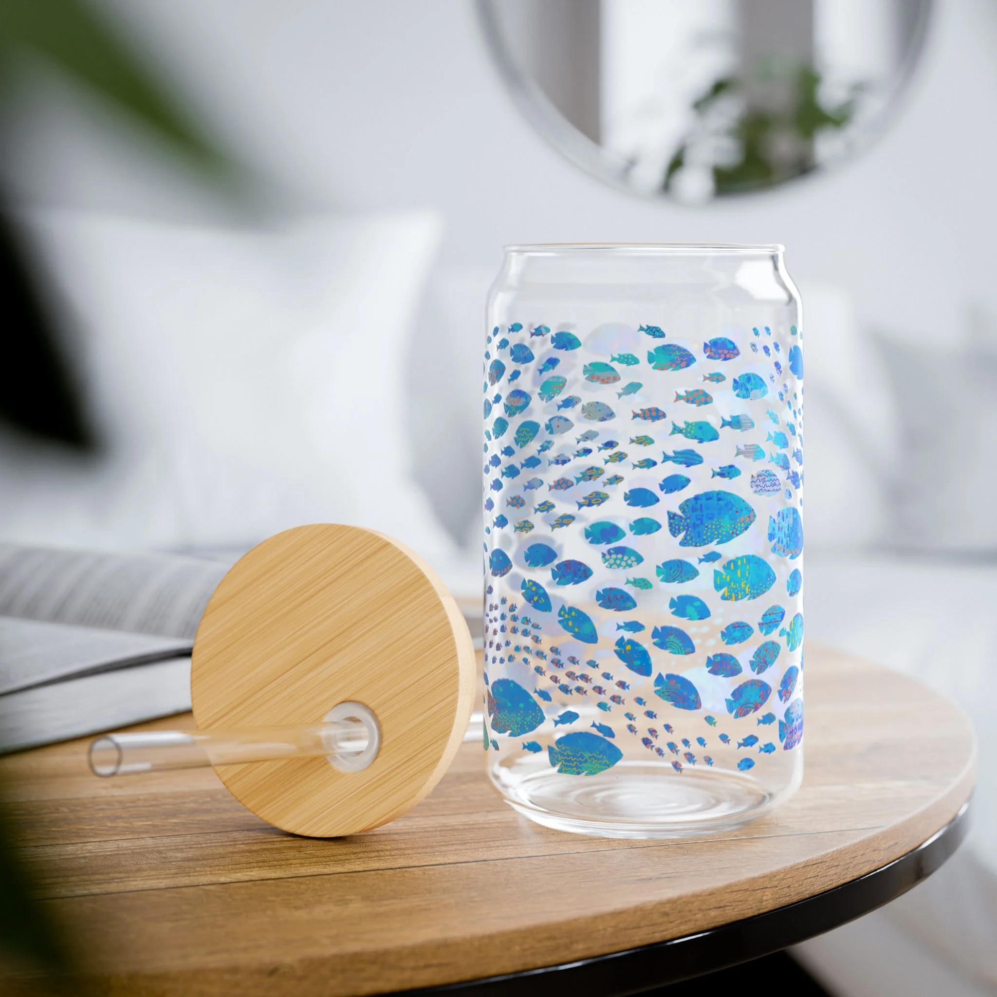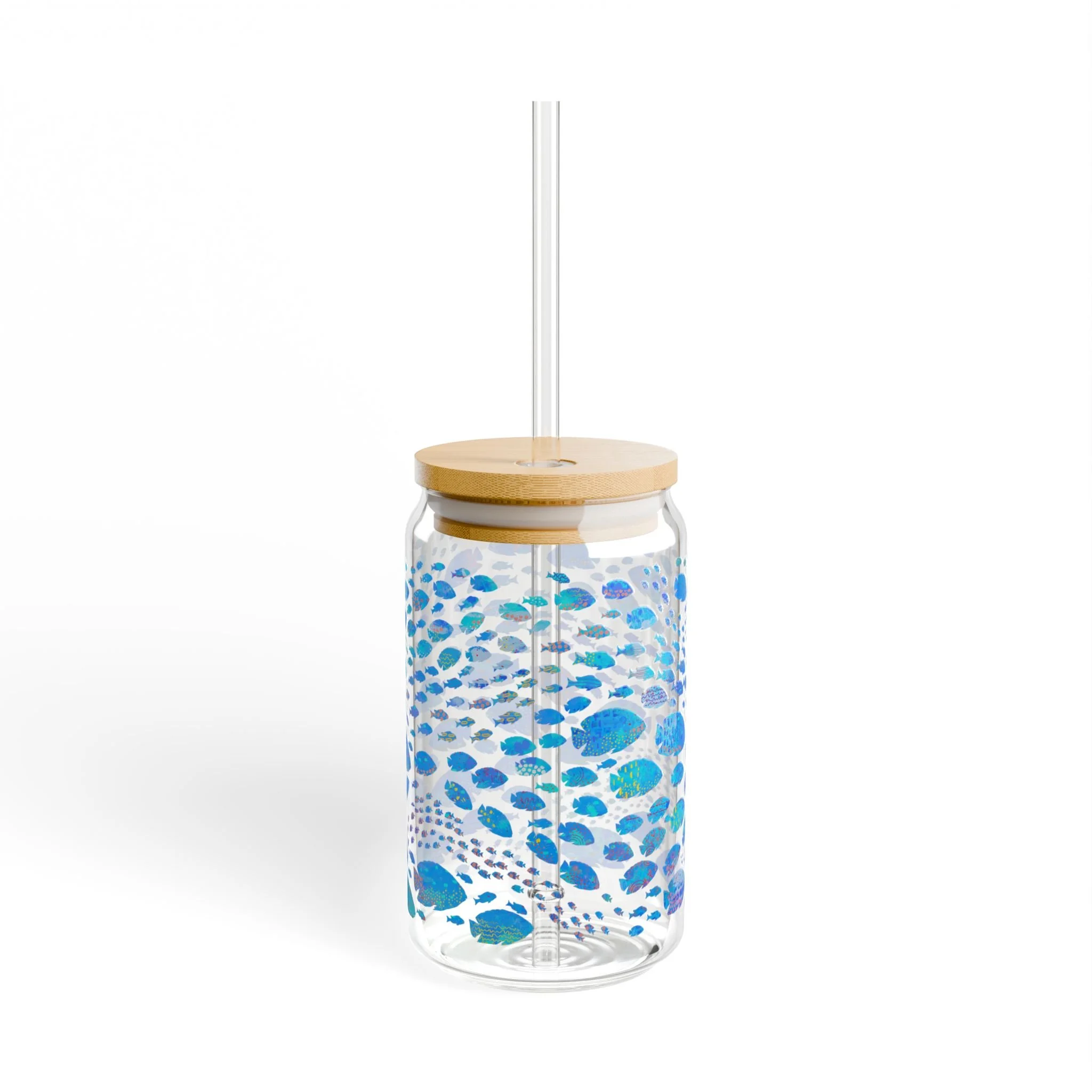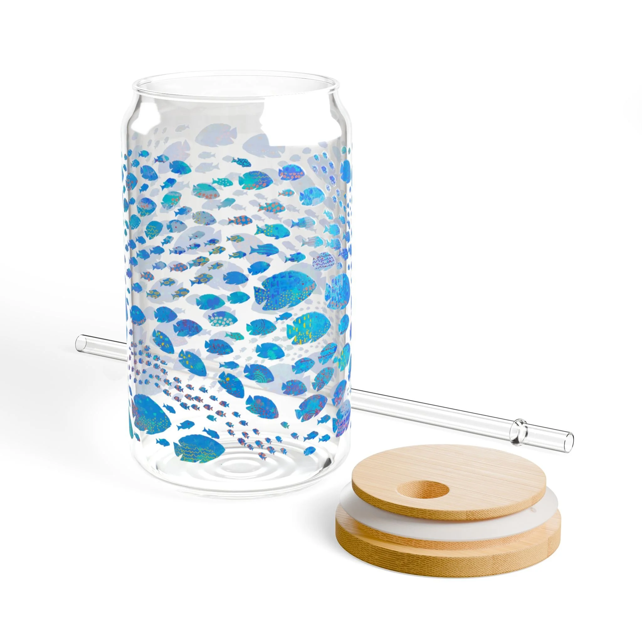 Ocean Wild ~ 16oz Sipper Glass with Bamboo Lid - Tropical Fish in Blue